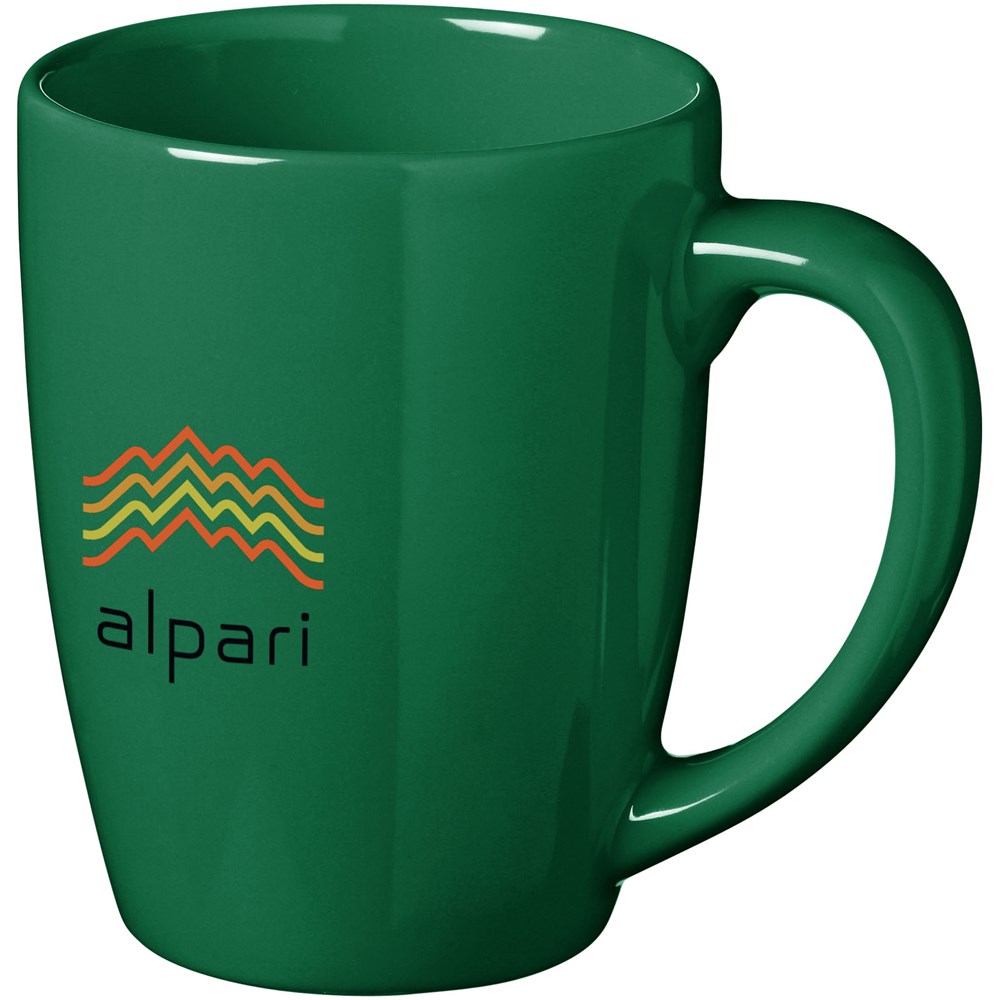 Trendy design mok van keramiek. Vaatwasmachinebestendig volgens EN12875-1 (minimaal 125 wasbeurten) voor alle decoratiemethoden. Inhoud 350 ml. Geleverd in een witte geschenkverpakking.