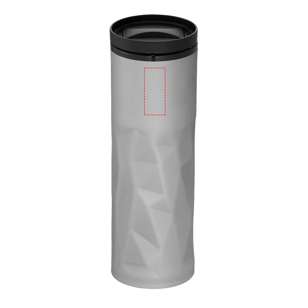 Dubbelwandig geïsoleerde beker met deksel en schuifvergrendeling. Inhoud 450 ml.