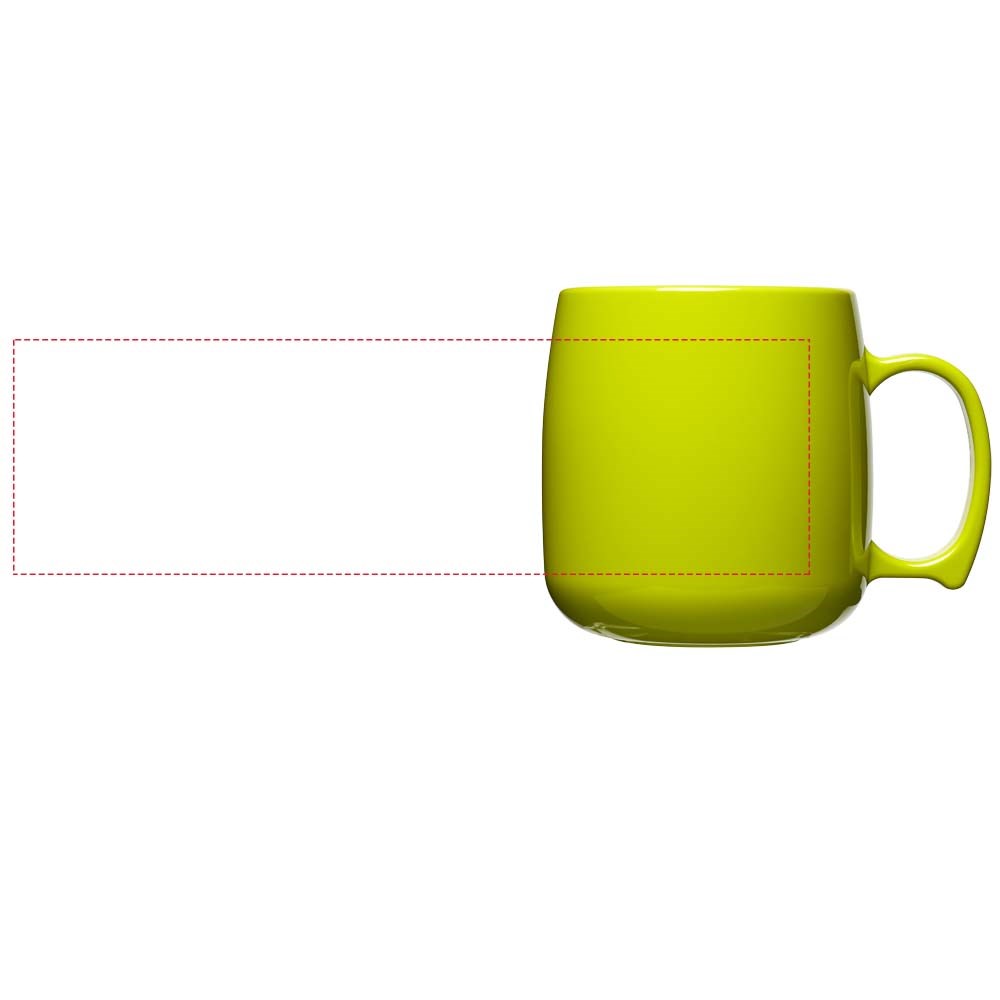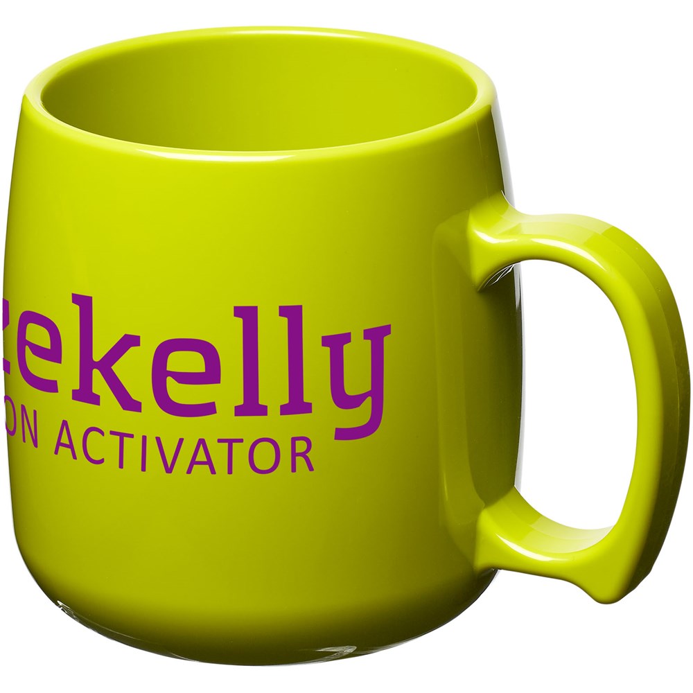 Duurzame, enkelwandige kunststof mok. Volume 300 ml. Gemaakt in het Verenigd Koninkrijk.meer
