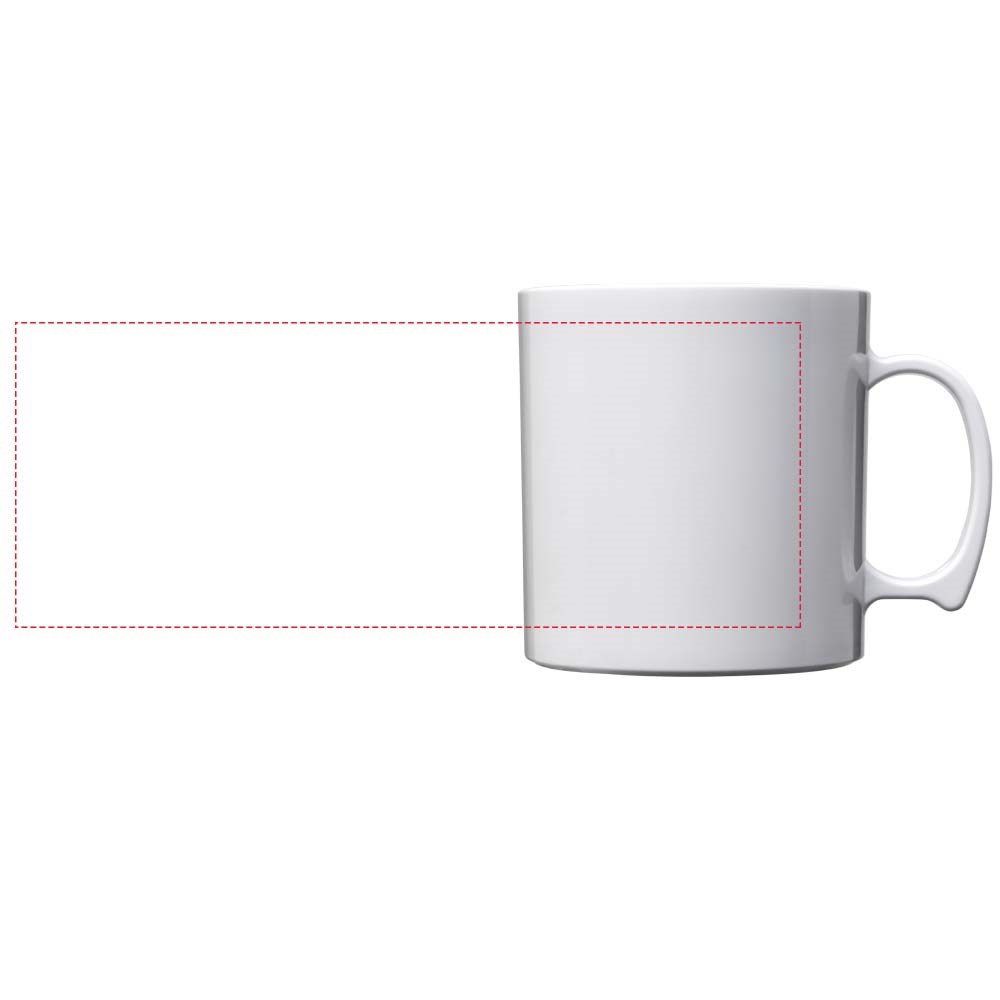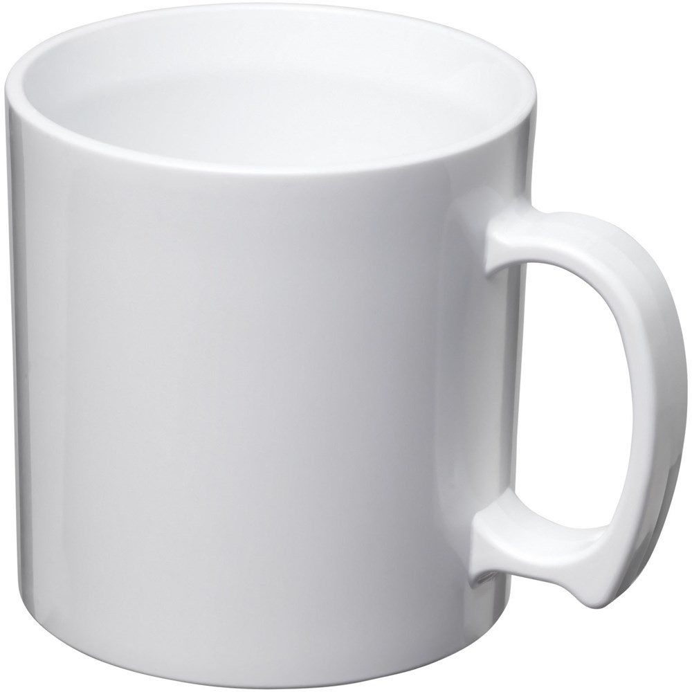 Duurzame, enkelwandige kunststof mok. Volume 300 ml. Gemaakt in het Verenigd Koninkrijk.meer