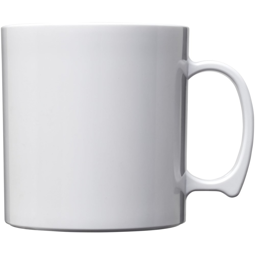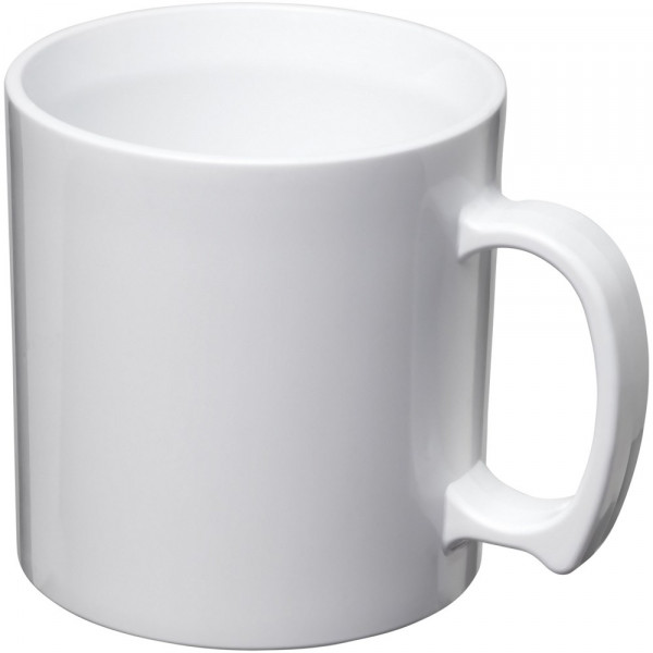 Duurzame, enkelwandige kunststof mok. Volume 300 ml. Gemaakt in het Verenigd Koninkrijk.