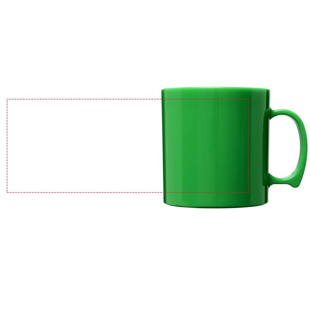 Duurzame, enkelwandige kunststof mok. Volume 300 ml. Gemaakt in het Verenigd Koninkrijk.meer