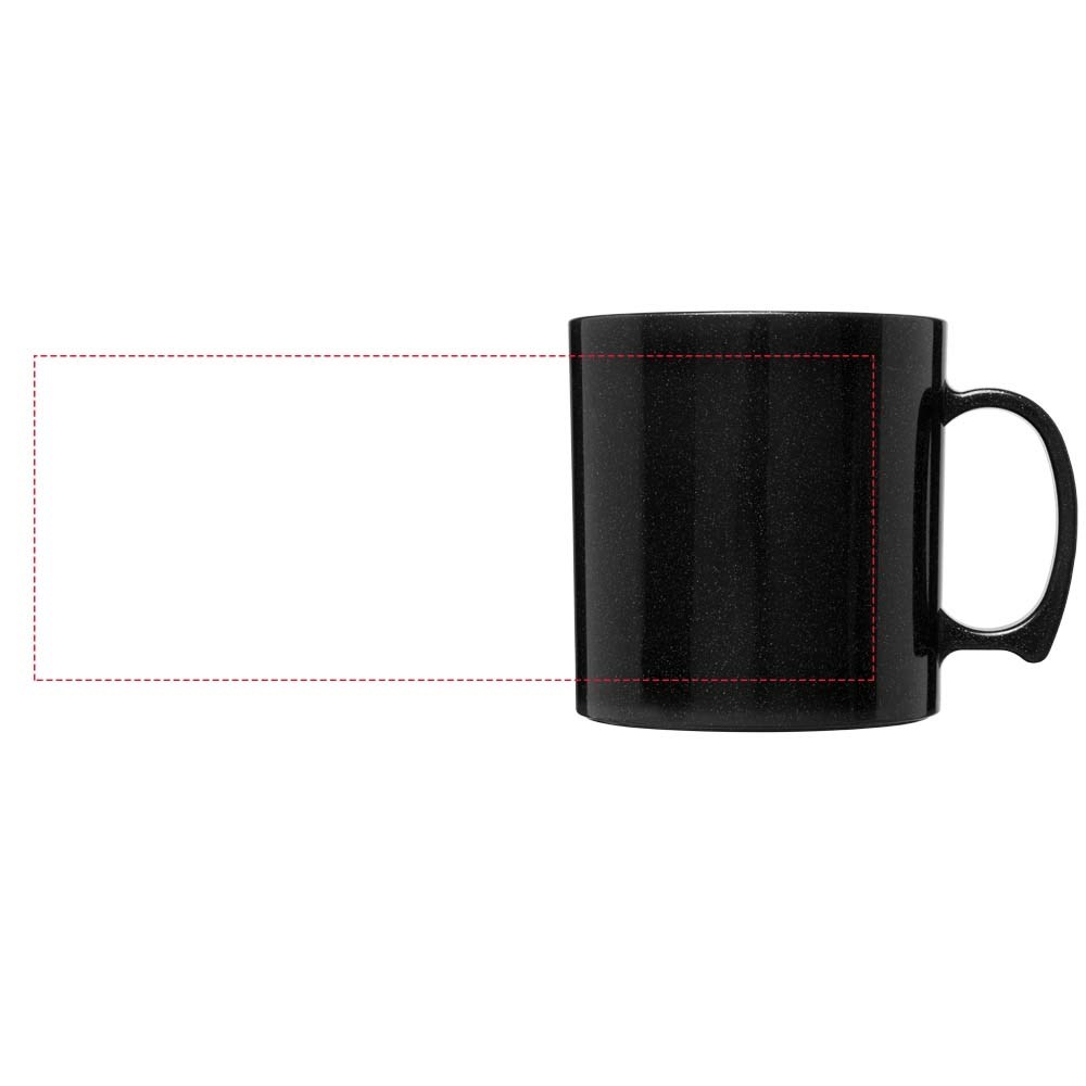 Duurzame, enkelwandige kunststof mok. Volume 300 ml. Gemaakt in het Verenigd Koninkrijk.meer
