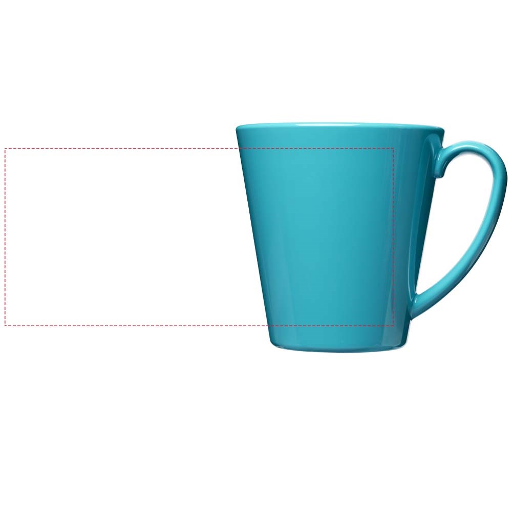 Duurzame, enkelwandige kunststof mok. Volume 350 ml. Gemaakt in het Verenigd Koninkrijk.meer