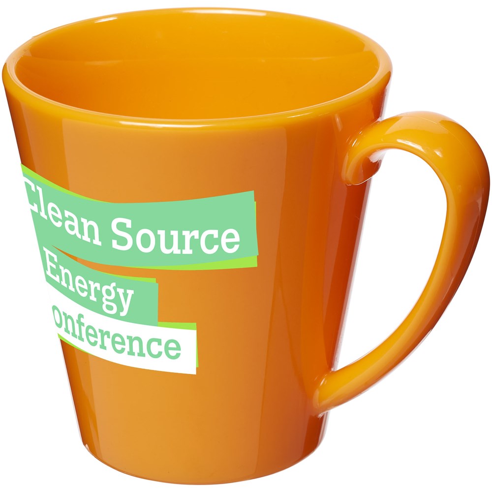 Duurzame, enkelwandige kunststof mok. Volume 350 ml. Gemaakt in het Verenigd Koninkrijk.meer