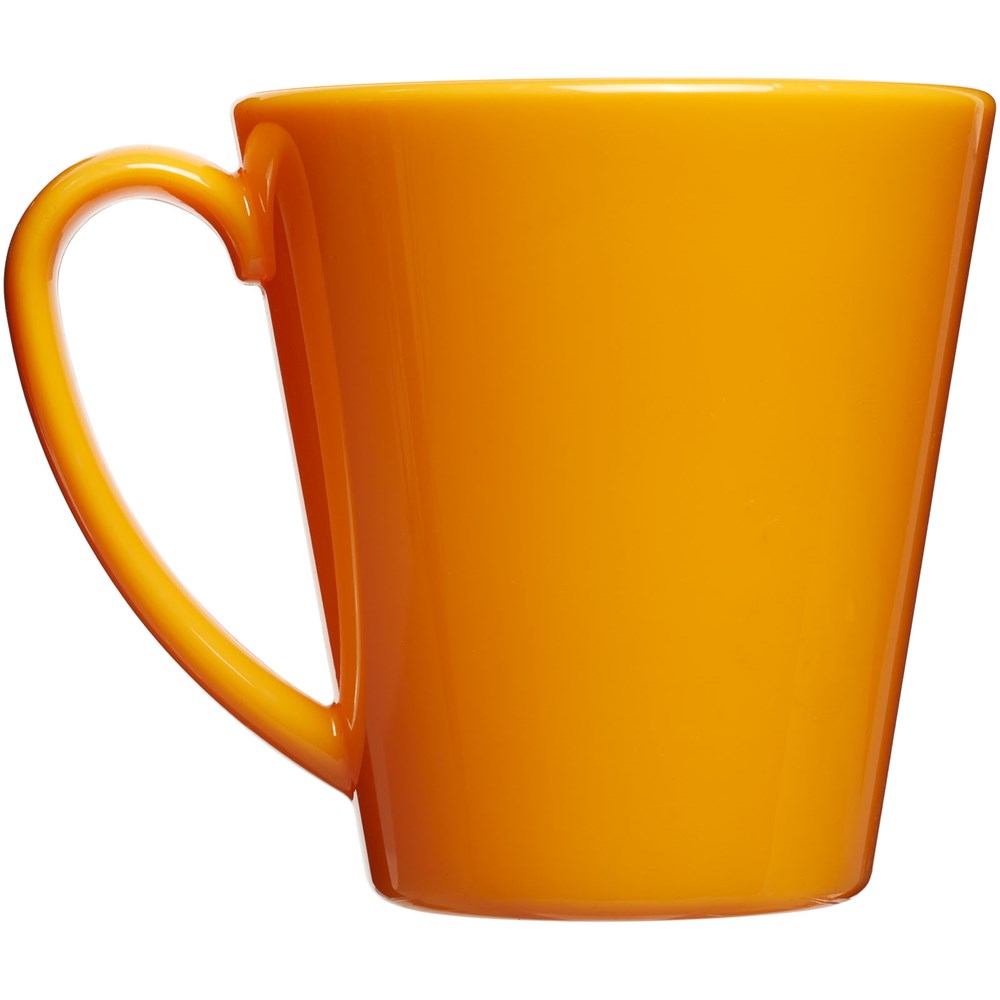 Duurzame, enkelwandige kunststof mok. Volume 350 ml. Gemaakt in het Verenigd Koninkrijk.