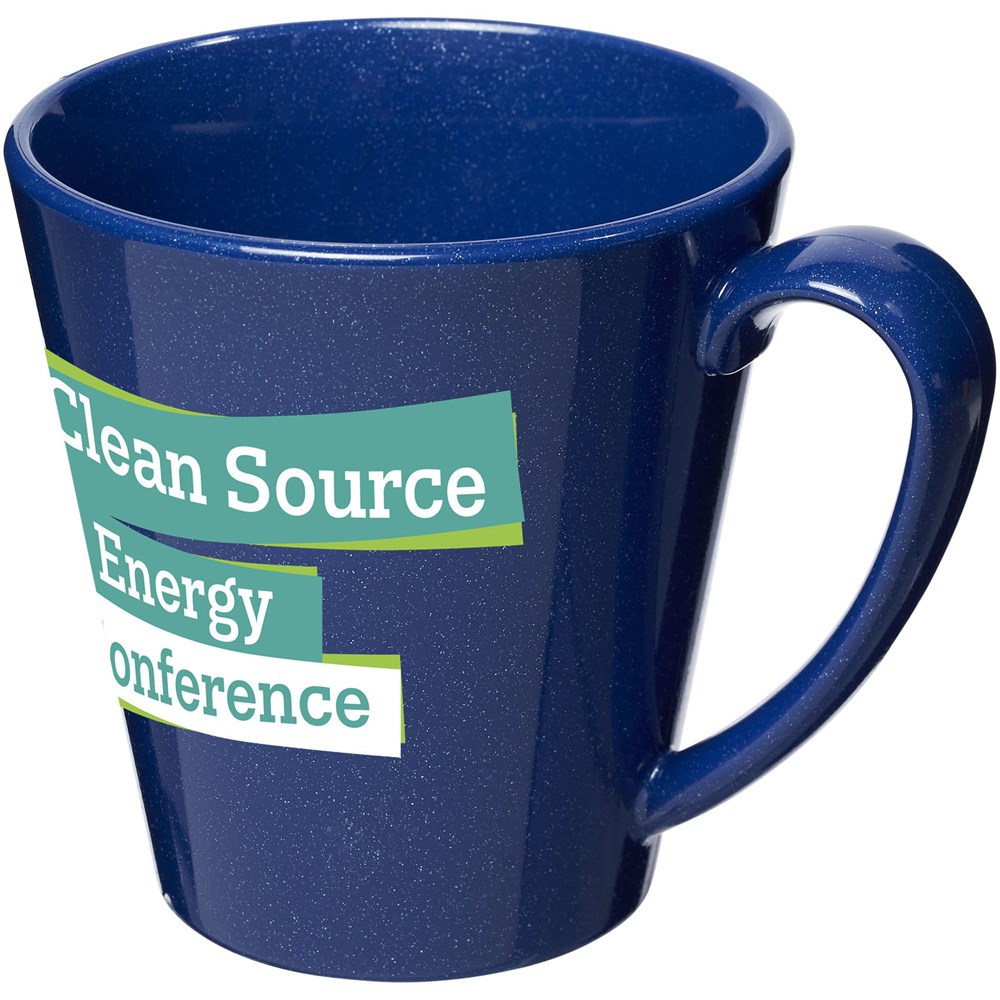 Duurzame, enkelwandige kunststof mok. Volume 350 ml. Gemaakt in het Verenigd Koninkrijk.meer