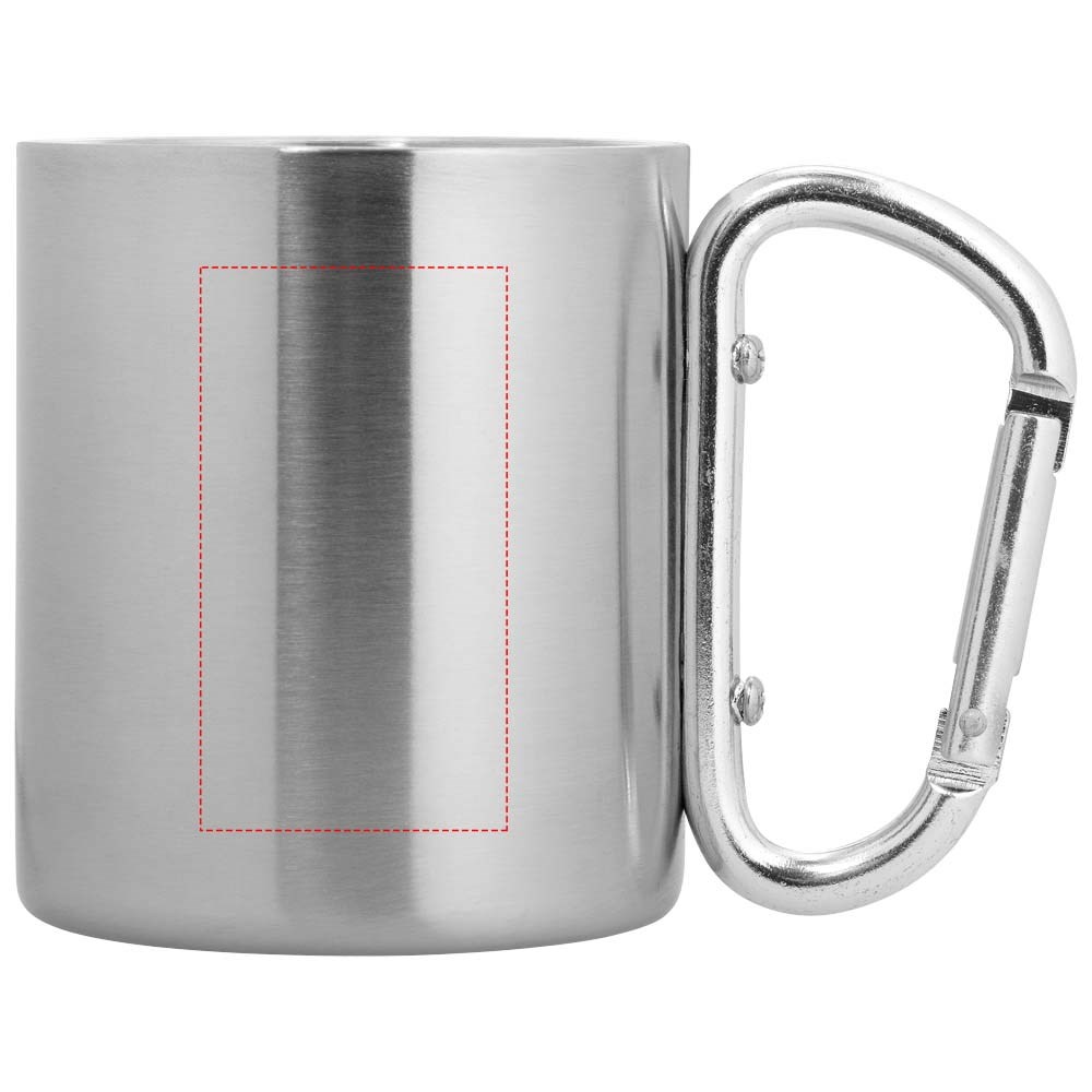 Geïsoleerde beker van roestvrij staal met groot handvat in de vorm van een karabijnhaak. Ideaal voor kampeerders en outdoor liefhebbers. Inhoud 200 ml.