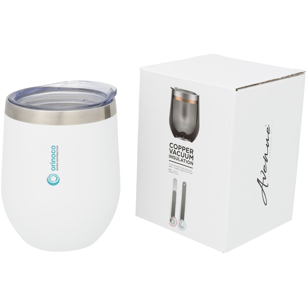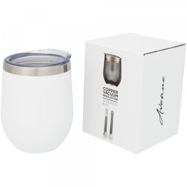 De Corzo koper vacuüm geïsoleerde beker heeft een dubbelwandige vacuümconstructie met koper isolatie, waarin uw drankje 6 uur warm en 24 uur koud blijft. De constructie voorkomt condensatie aan de buitenkant van de beker. Eenvoudige klikdop voor gemakkelijk drinken. Met spraypoedercoating op de buitenkant. Brede opening voor comfortabel vullen en schenken. Capaciteit is 350 ml. Gepresenteerd in een Avenue geschenkverpakking.