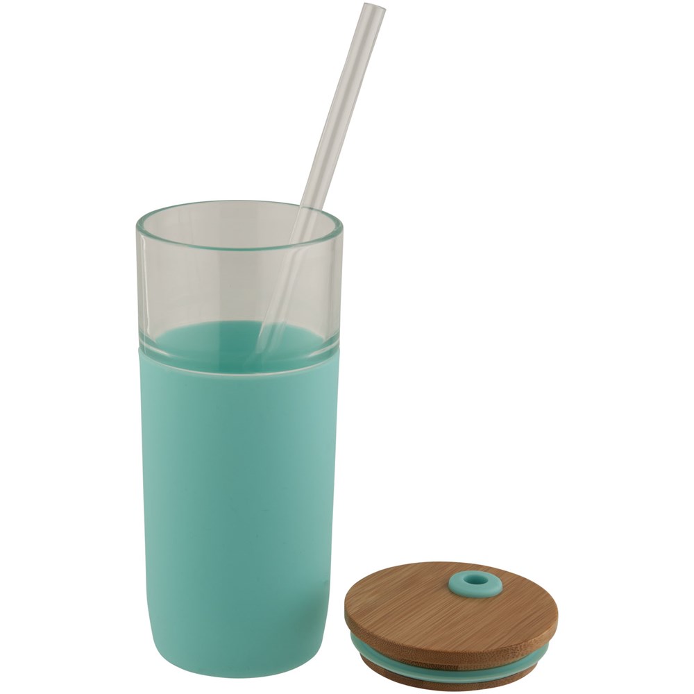 Enkelwandige glazen fles, comfortabele soft greep, bamboo druk sluiting, bijpassend Tritan ™...meer