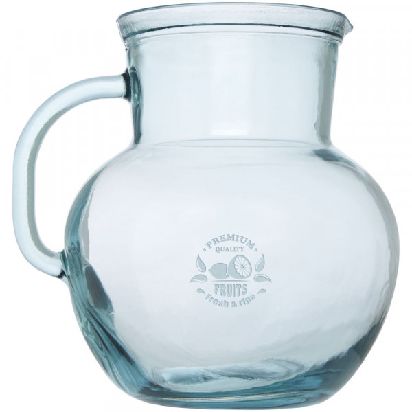 5-delige gerecyclede glazen set met een 2,3 liter pot en vier 430 ml kopjes. Gemaakt van 5 glazen flessen. Gerecycled glas wordt geproduceerd met minder energie, grondstoffen en toevoegingen, dan wat nodig is voor het maken van traditioneel glas.