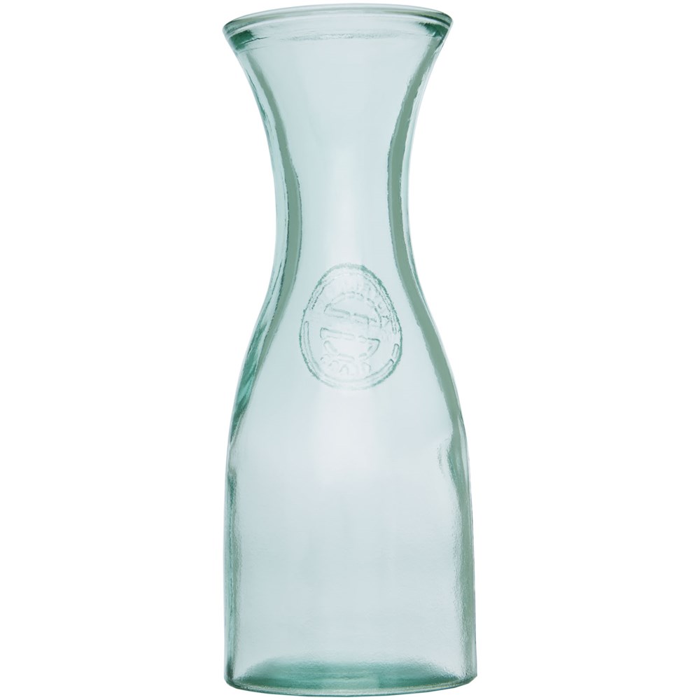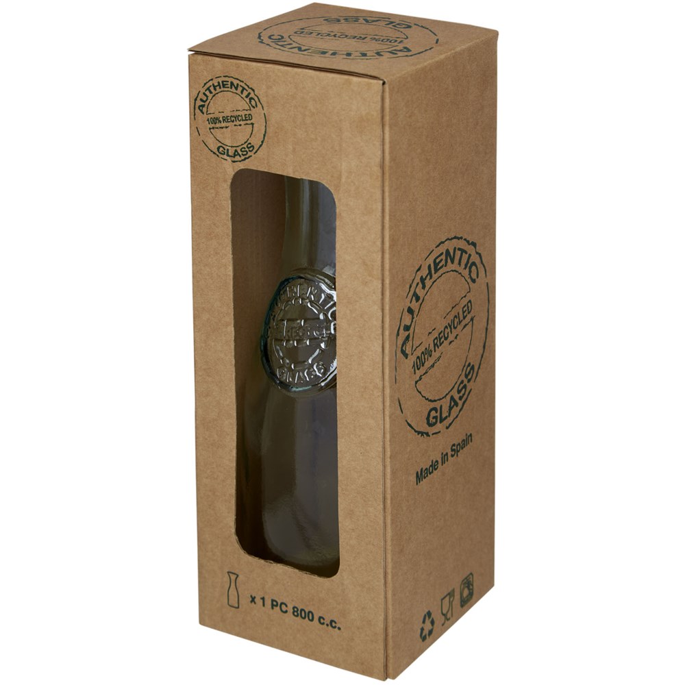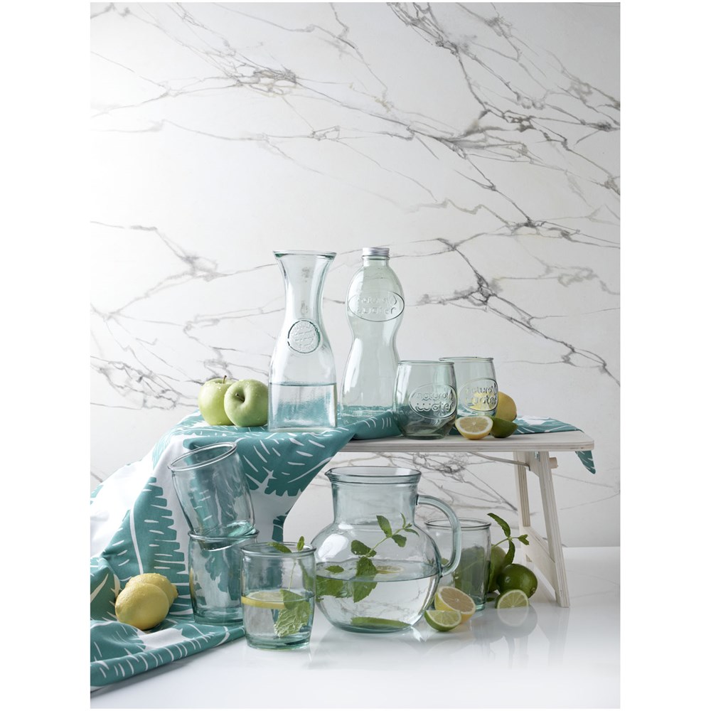 800 ml gerecyclede glazen karaf gemaakt van 1,5 glazen fles. Gerecycled glas wordt geproduceerd met minder energie, grondstoffen en toevoegingen, dan wat nodig is voor het maken van traditioneel glas.