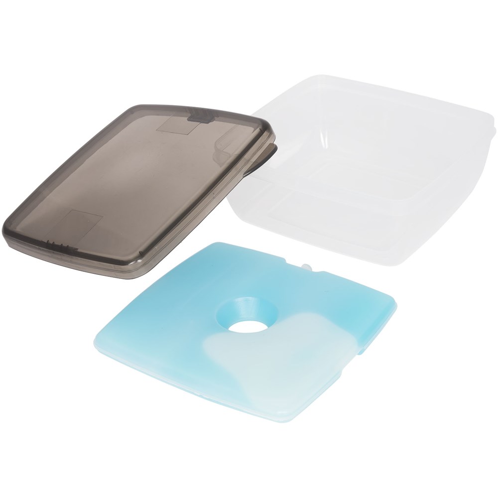 Lunchbox inclusief een verwijderbaar koelcompartiment aan de binnenkant van de transparante deksel om je lunch koel en vers te houden. Vaatwasmachinebestendig en de box kan in de magnetron. Verkrijgbaar in drie kleuren.