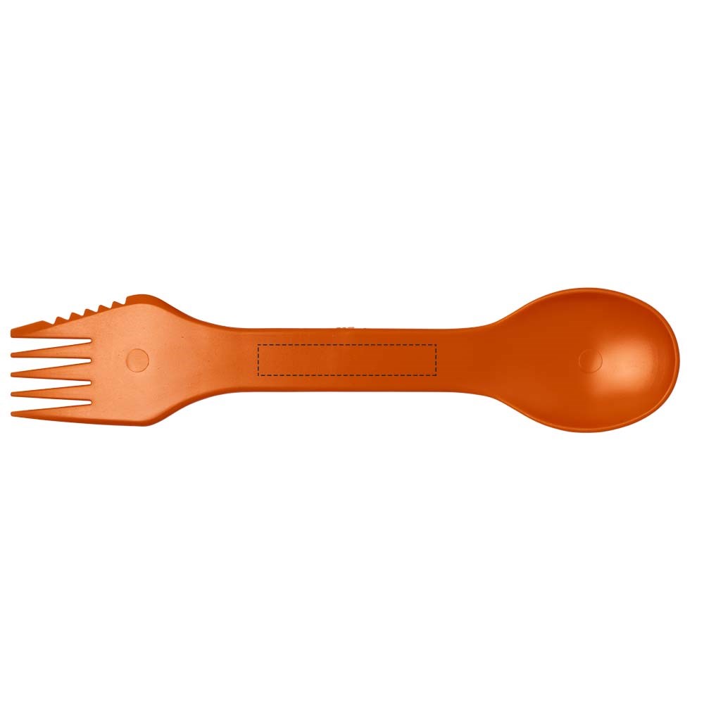 Een gecombineerde vork en lepel met snijvlak die geweldig is voor op de camping, festival of tijdens picknicks en andere buitenactiviteiten.