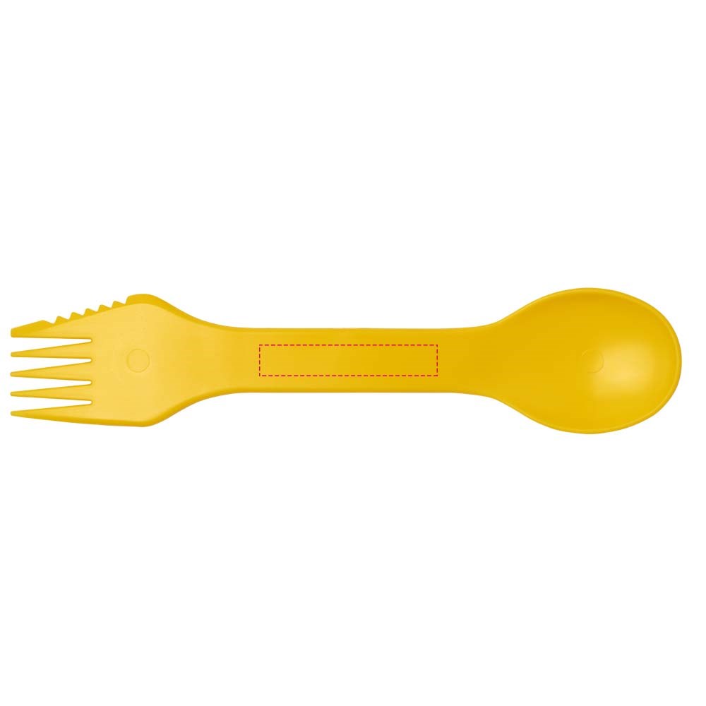 Een gecombineerde vork en lepel met snijvlak die geweldig is voor op de camping, festival of tijdens picknicks en andere buitenactiviteiten.