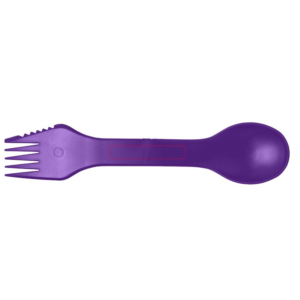 Een gecombineerde vork en lepel met snijvlak die geweldig is voor op de camping, festival of tijdens picknicks en andere buitenactiviteiten.