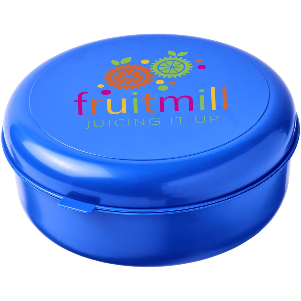 Grote kunststof lunchbox met een drukdeksel die verkrijgbaar is in de meest diverse kleuren.