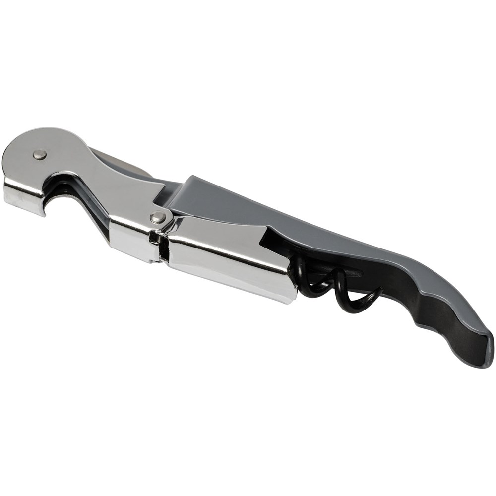 Sommeliersmes met kurkentrekker, flessenopener en capsulesnijder. Geleverd in witte geschenkverpakking (afmetingen: 12,4 x 2,5 x 1,5 cm).