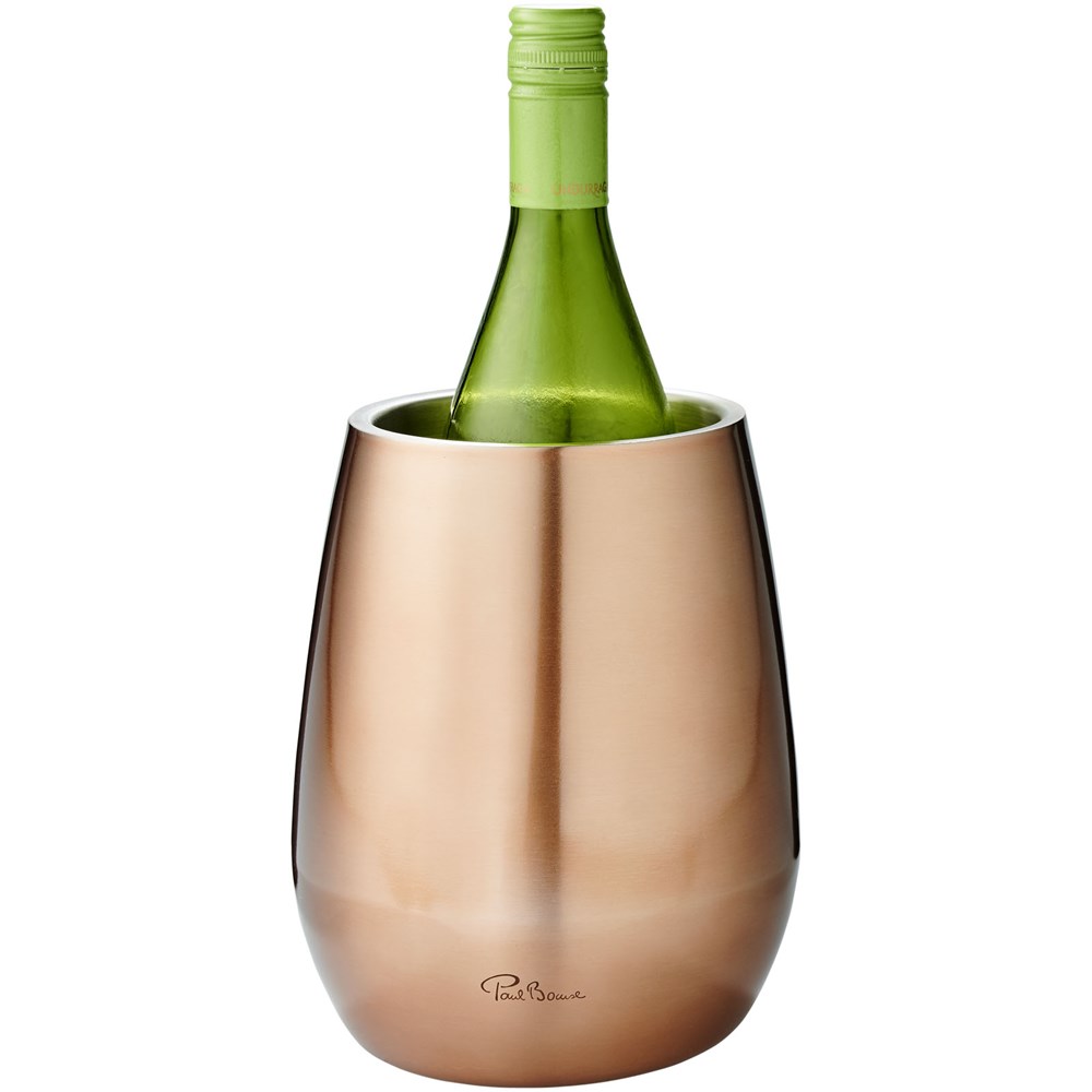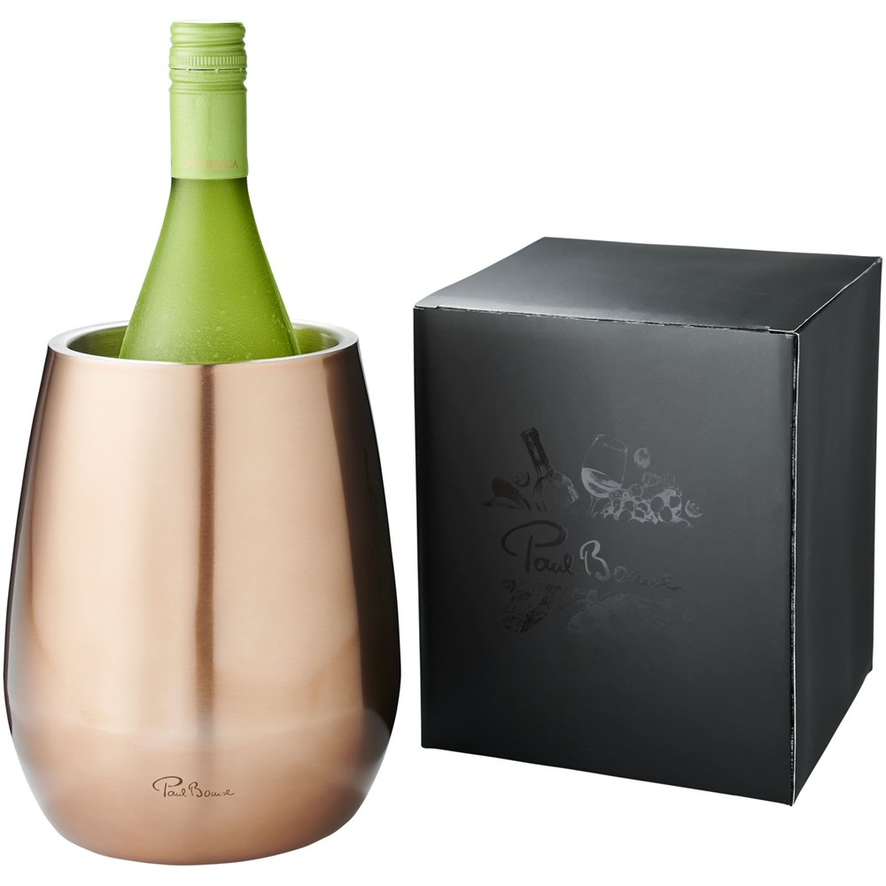 Dubbelwandige wijnkoeler van roestvrij staal, gepresenteerd in Paul Bocuse geschenkverpakking. Exclusief ontwerp.