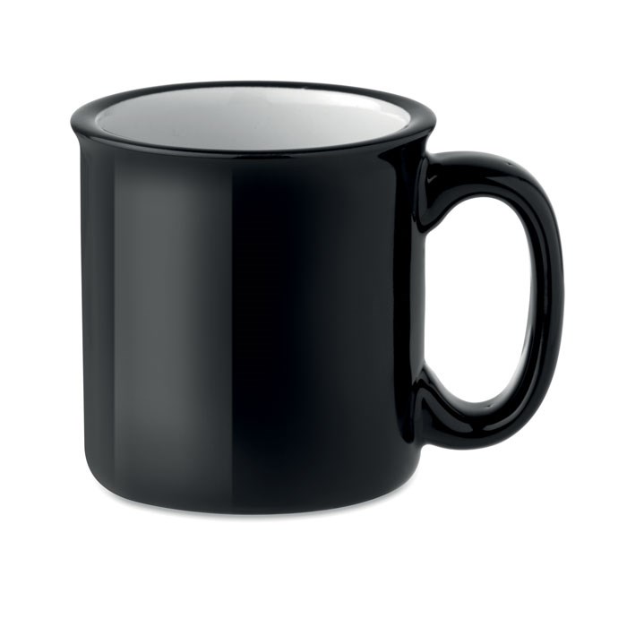 Keramische vintage beker. Inhoud 240 ml. Per stuk verpakt in wit kartonnen doosje. Keramische transfer is vaatwasserbestendig.