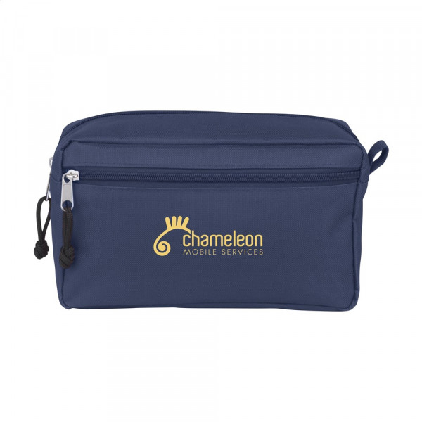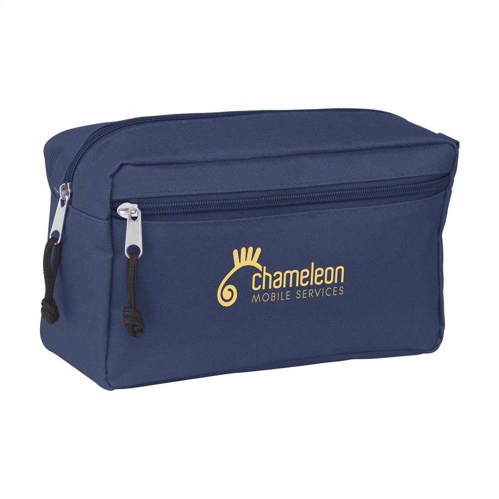 Royaal etui van 600D polyester, voor het opbergen van make-up of toiletartikelen. Met ophanglus en extra ritsvak.