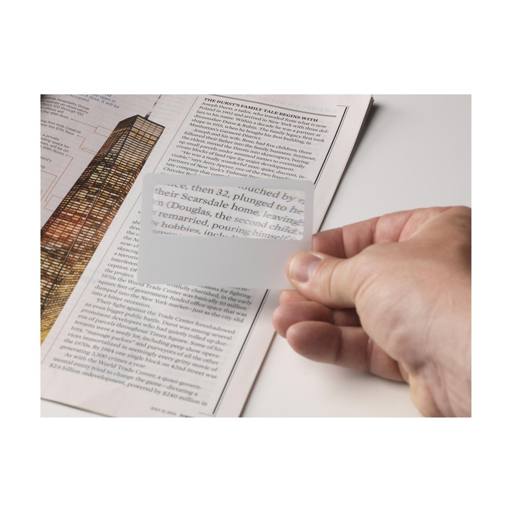 Vergrootglas in creditcard formaat. Vergroot tot 3 keer.