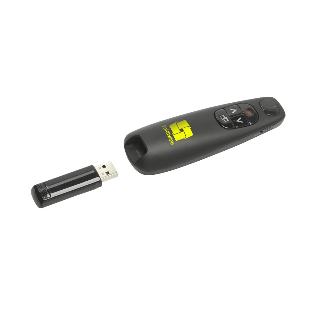 Professionele draadloze presenter voor het comfortabel aansturen van presentaties. Met USB plug, page up/down functie, rode laserpointer en een bereik van ca.10 meter. Bruikbaar onder de meest gangbare besturingssystemen. Incl. batterijen en gebruiksaanwijzing. per stuk in doosje