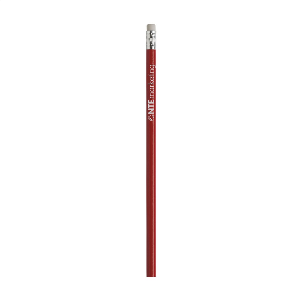 Ongeslepen, houten (HB) potlood met gum. Voorzien van een glanzende laklaag.