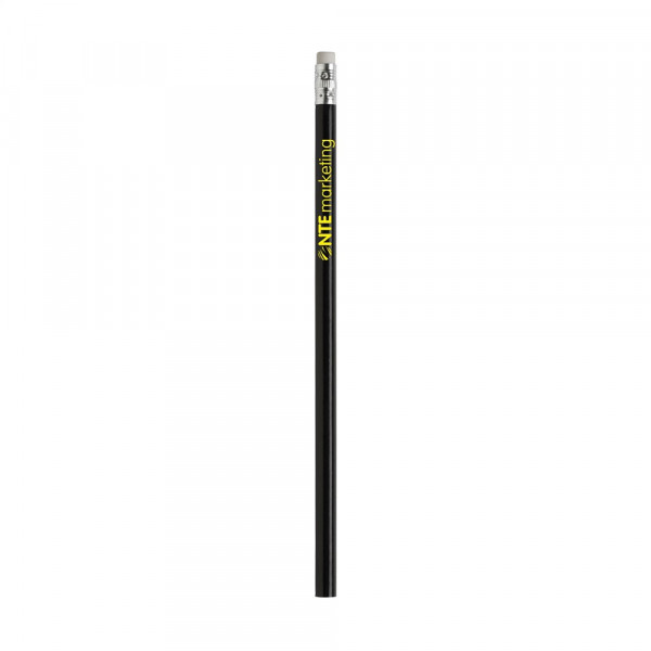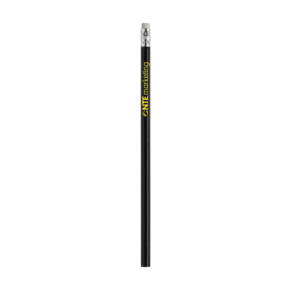 Ongeslepen, houten (HB) potlood met gum. Voorzien van een glanzende laklaag.