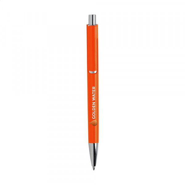 Blauwschrijvende balpen met uniek design: de body en clip van deze balpen zijn uit één geheel vormgegeven en dat maakt deze pen tot een bijzondere eyecatcher. Met opvallend zilverkleurig accent onder de optisch 'zwevende' clip.