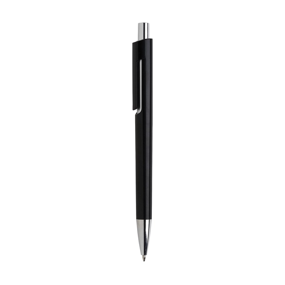 Blauwschrijvende balpen met uniek design: de body en clip van deze balpen zijn uit één geheel vormgegeven en dat maakt deze pen tot een bijzondere eyecatcher. Met opvallend zilverkleurig accent onder de optisch 'zwevende' clip.