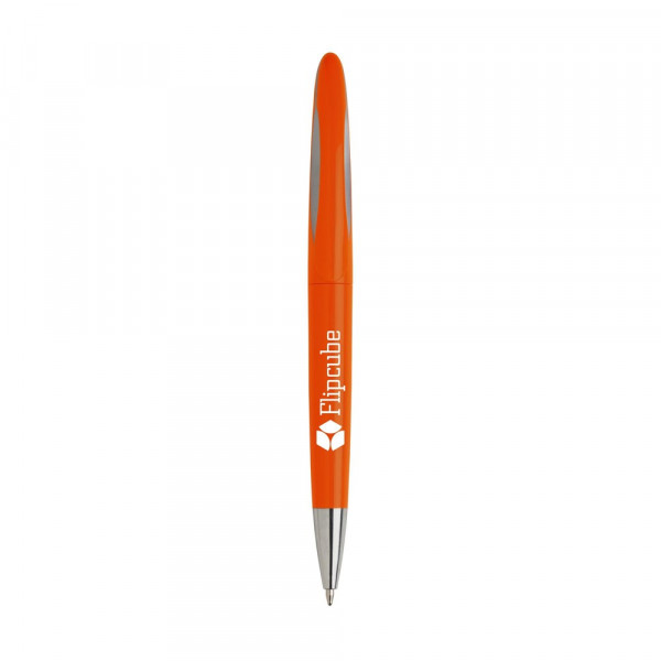 Blauwschrijvende balpen met fraai vormgegeven clip voorzien van een opvallend, grijs kleuraccent en draaikliksysteem.