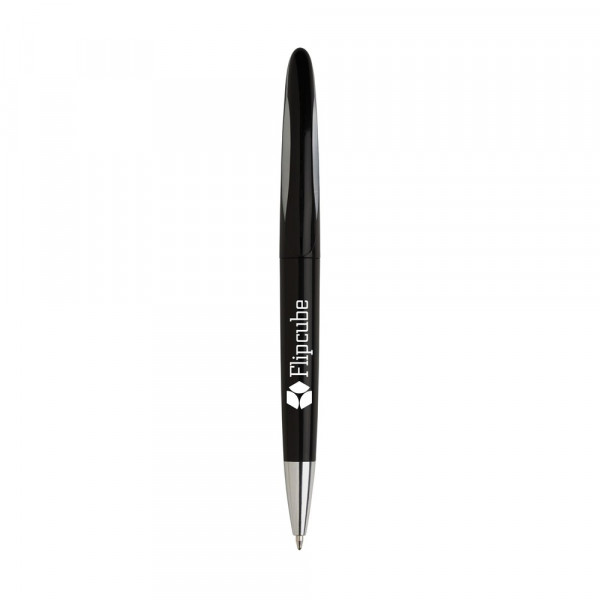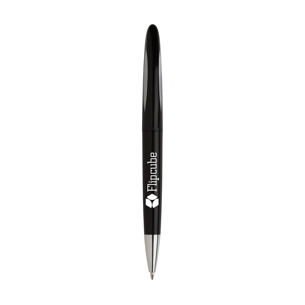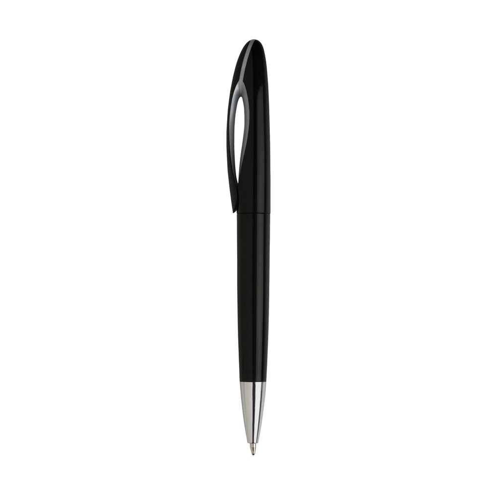 Blauwschrijvende balpen met fraai vormgegeven clip voorzien van een opvallend, grijs kleuraccent en draaikliksysteem.