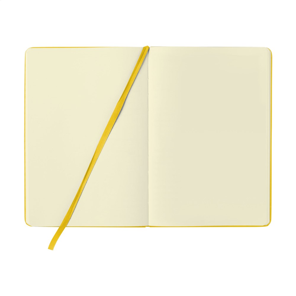 Praktisch notitieboekje in A5-formaat. Met harde PU cover, ca. 80 vel pagina's crèmekleurig, ongelinieerd papier (70 g/m²), elastische sluiting en leeslint.