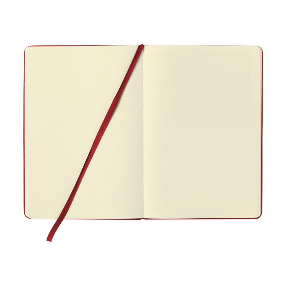 Praktisch notitieboekje in A5-formaat. Met harde PU cover, ca. 80 vel pagina's crèmekleurig, ongelinieerd papier (70 g/m²), elastische sluiting en leeslint.