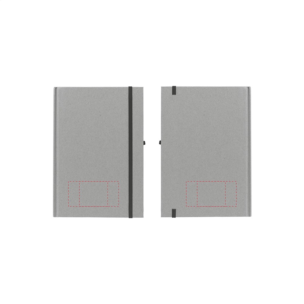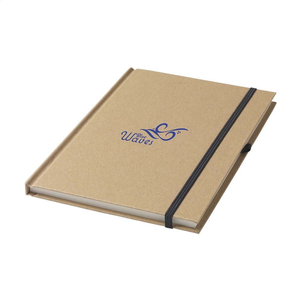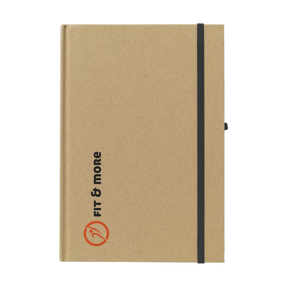 Milieuvriendelijk, A5 formaat notitieboekje van gerecycled materiaal. Met ca. 80 vel crèmekleurig, gelinieerd papier, handige penlus en elastische sluiting.
