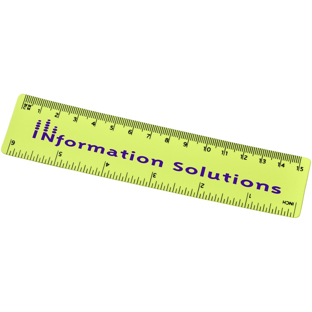 Flexibele lichtgewicht kunststof liniaal met zowel markeringen in inches als centimeters. Let op, de markeringen op de linialen worden samen met het artwork bedrukt, onbewerkte linialen zijn niet voorzien van markeringen.