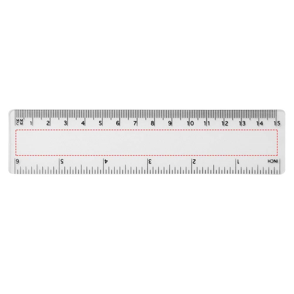 Flexibele lichtgewicht kunststof liniaal met zowel markeringen in inches als centimeters. Let op, de markeringen op de linialen worden samen met het artwork bedrukt, onbewerkte linialen zijn niet voorzien van markeringen.