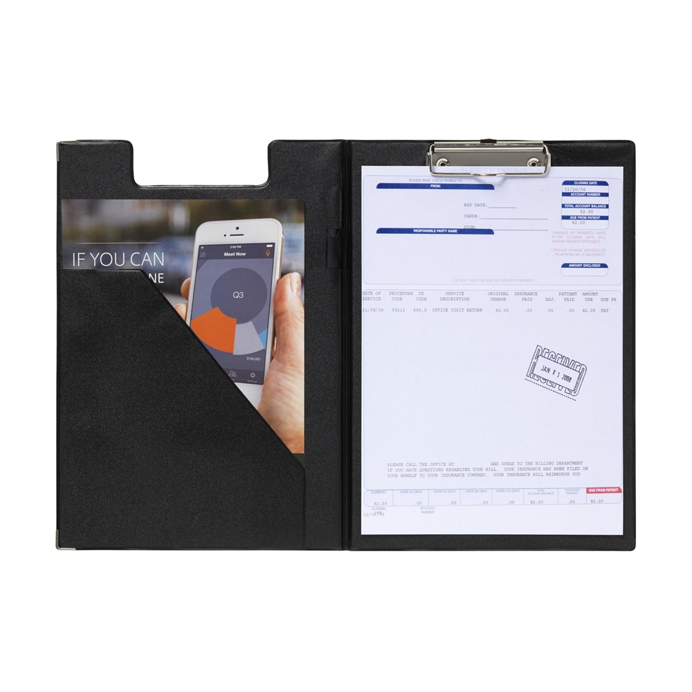 Imitatieleren klemmap in A4-formaat. Met uitschuifbaar ophangoog.