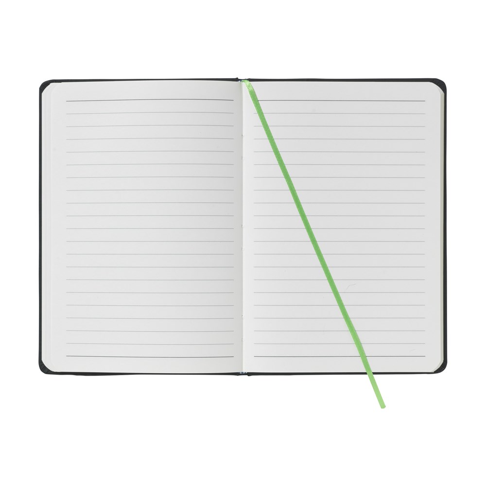 Praktisch en handzaam notitieboekje in A5 formaat. Met 80 vel crèmekleurig gelinieerd papier, stevige PU cover, elastische sluiting, gebonden rug en zijden leeslint.