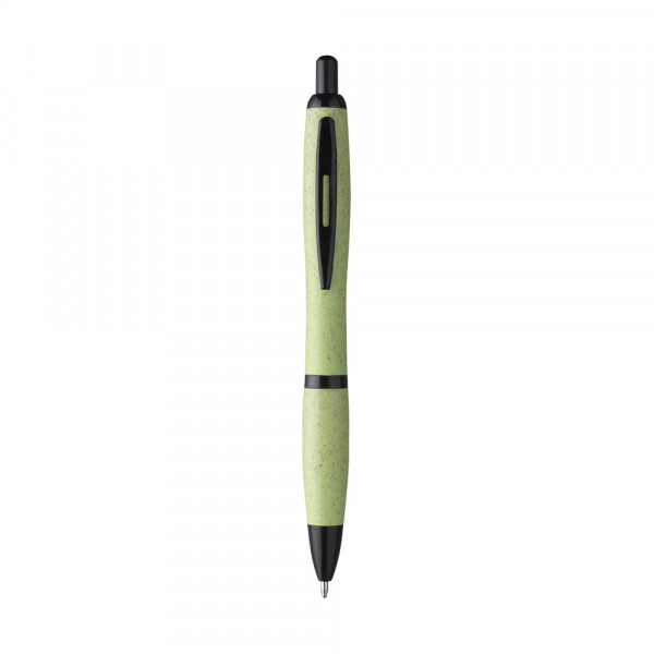 Eco-vriendelijke, blauwschrijvende balpen gemaakt van 50% PP en 50% tarwestro. Voorzien van zwarte accenten en metalen clip. Gedeeltelijk biologisch afbreekbaar.