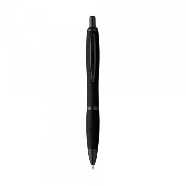 Eco-vriendelijke, blauwschrijvende balpen gemaakt van 50% PP en 50% tarwestro. Voorzien van zwarte accenten en metalen clip. Gedeeltelijk biologisch afbreekbaar.