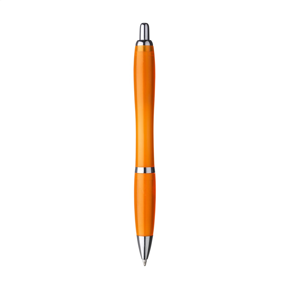 Blauwschrijvende balpen met transparant gekleurde RPET houder; gemaakt van gerecyclede PET-flessen. Met hoogglans accenten en metalen clip. Duurzaam, milieuvriendelijk en ecologisch verantwoord.
