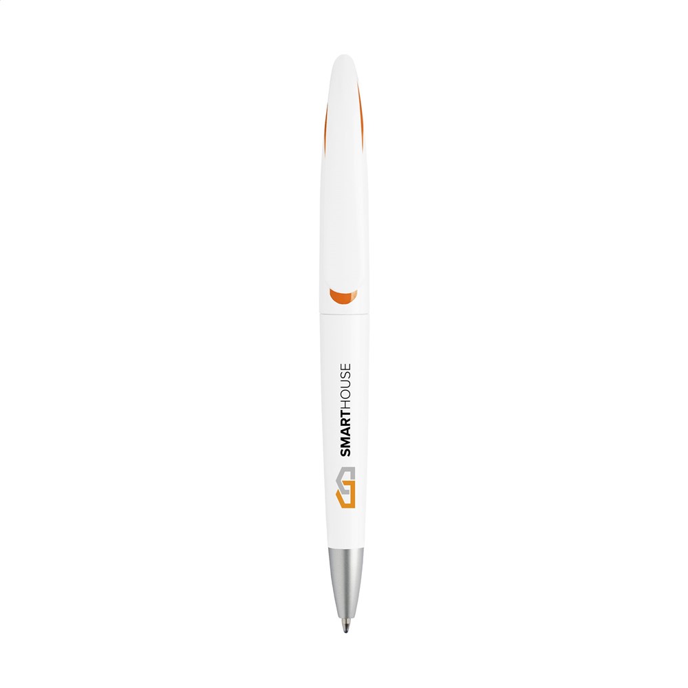 Blauwschrijvende balpen met fraai gebogen clip met kleuraccent en draaikliksysteem.