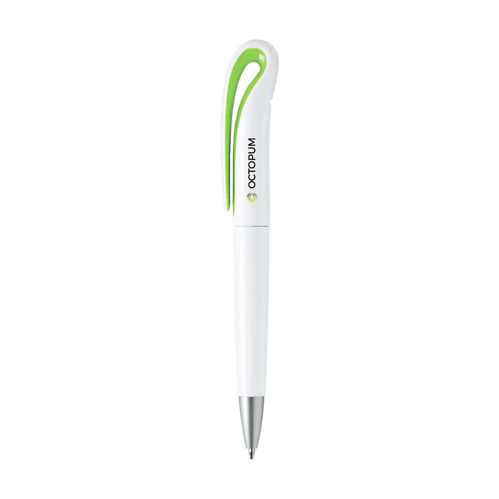 Blauwschrijvende balpen met fraai gebogen clip met kleuraccent en draaikliksysteem.