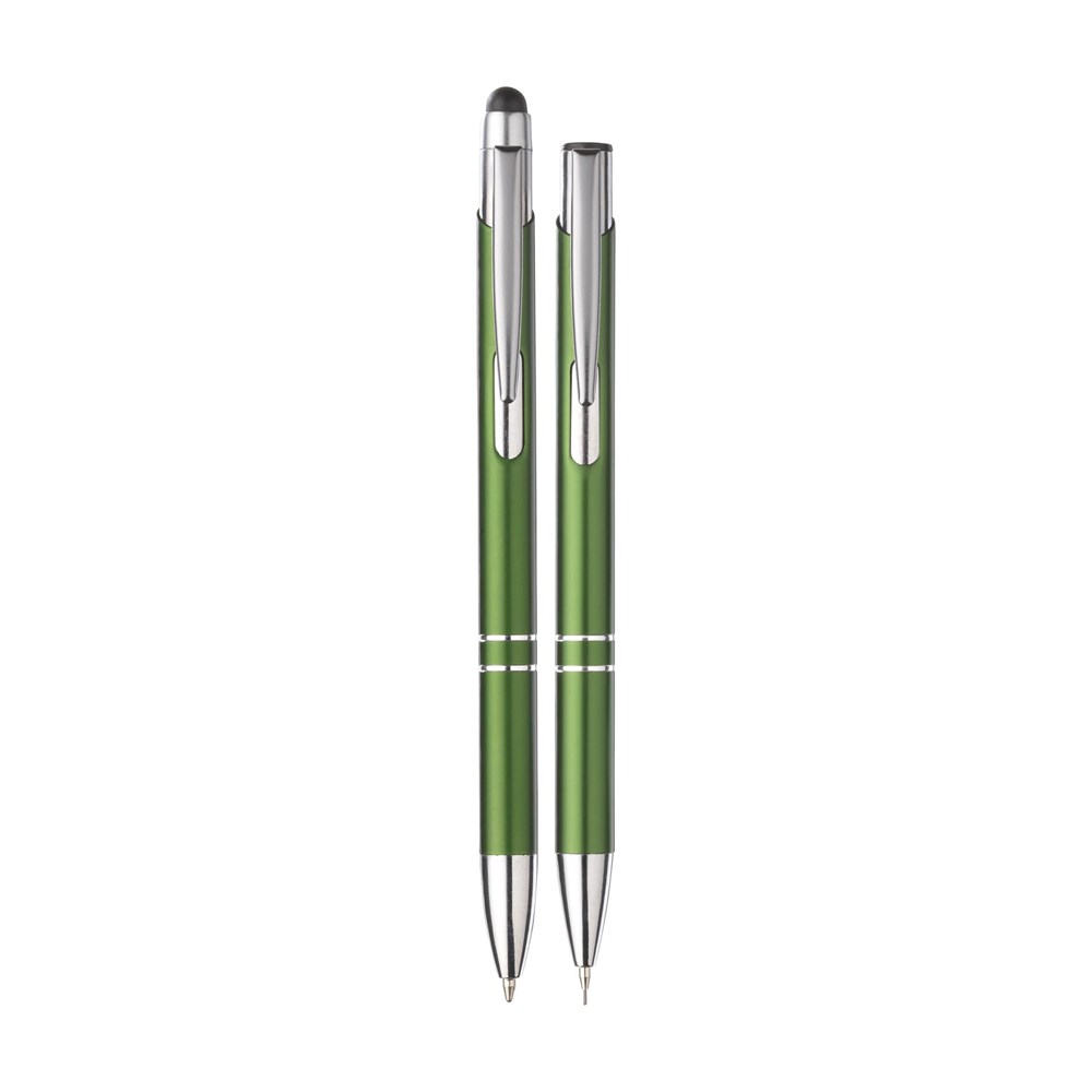 Aluminium schrijfset: blauwschrijvende touchpen en vulpotlood met 2 HB vullingen (0,7 mm). Beide met matgekleurde, metalic look houder. Geef uw geschenk meer karakter met één van onze stijlvolle geschenkverpakkingen.