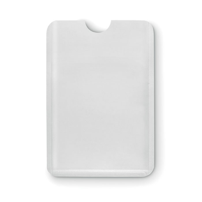 Anti skimming (RFID) kunststof kaarthouder voor een (bank)pas. Metalen deel is om skimmen te voorkomen.