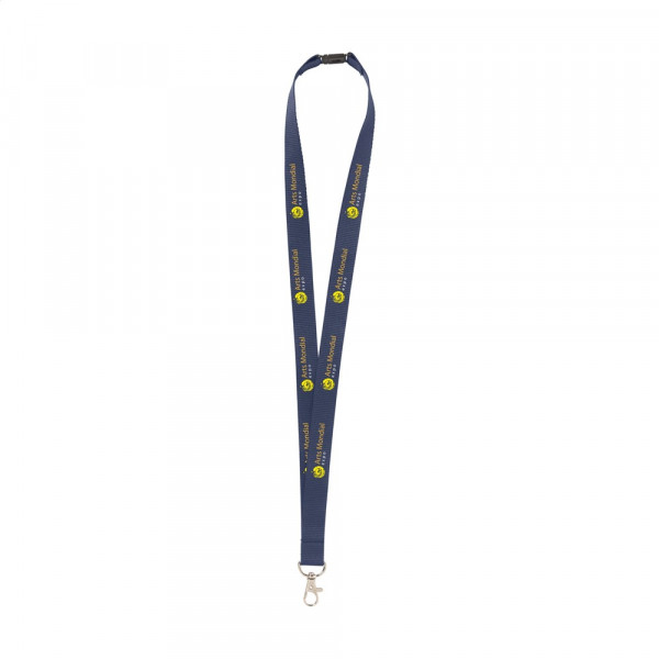 Polyester lanyard met metalen karabijnhaak en veiligheidssluiting.meer