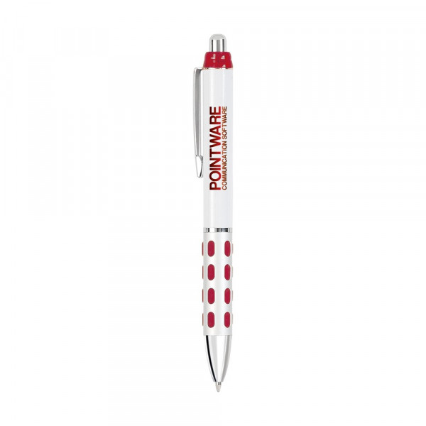 Blauwschrijvende balpen met aluminium, gripvast voorstuk met rubberen accenten.