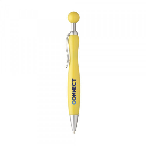 Blauwschrijvende balpen met opvallende drukknop.meer